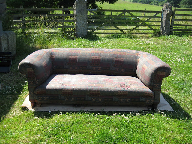 Laura and I took advantage of the recent hot spell to rip out the old coverings and stuffings but firstly, we had to choose a name! Looking at the old fabric which definitely has an Egyptian theme we settled on Cleopatra.